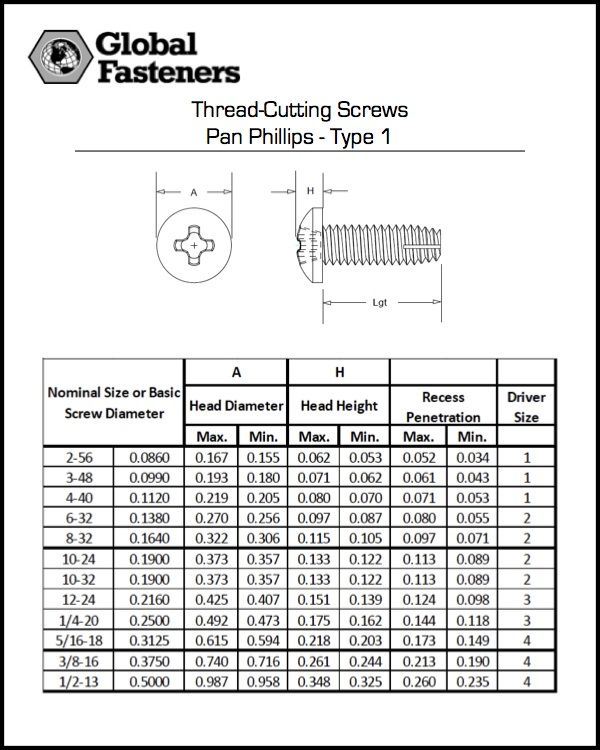 Thread-Cutting Screws - Pan Head Phillips Type 1 Thread-Cutting Screws - Pan Head Phillips Type 1
